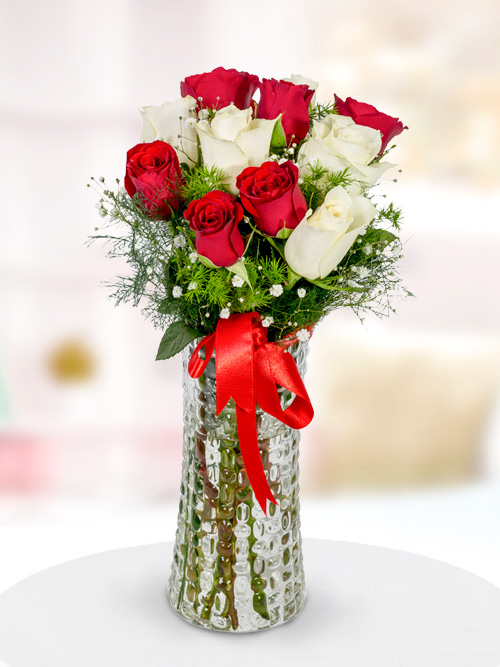 11 Adet Kırmızı ve Beyaz Güller